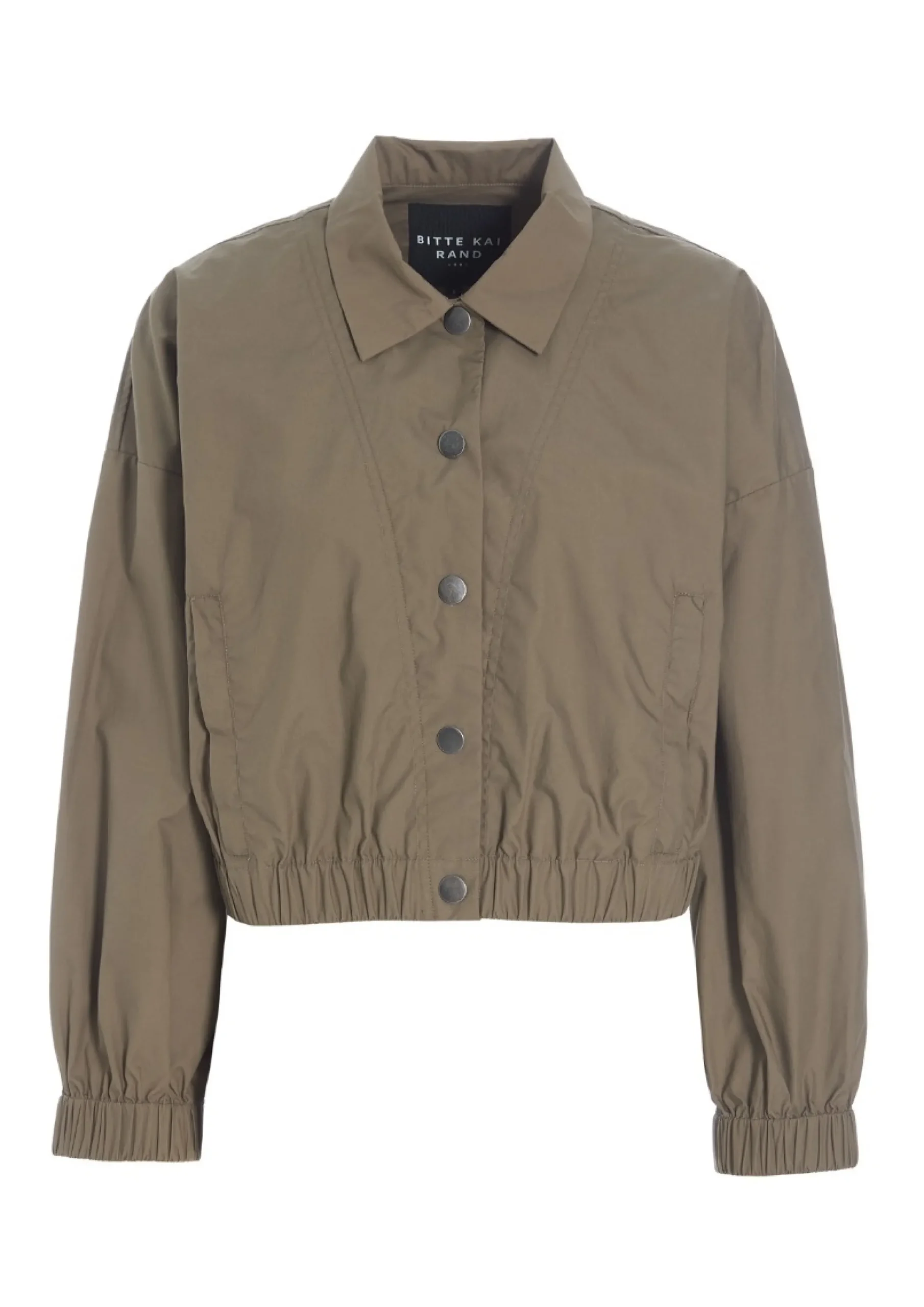 Lækker kort jakke, der har trykknapper og elastik i taljen, hvilket giver en feminin silhuet. Brug jakken som et friskt alternativ til en blazer, eller lav et lækkert sæt ved at kombinere den med de matchende Paper Poplin bukser.Modellen på billede er 178 cm og iført str. SFuld længde i str. S, ca. 49 cm.