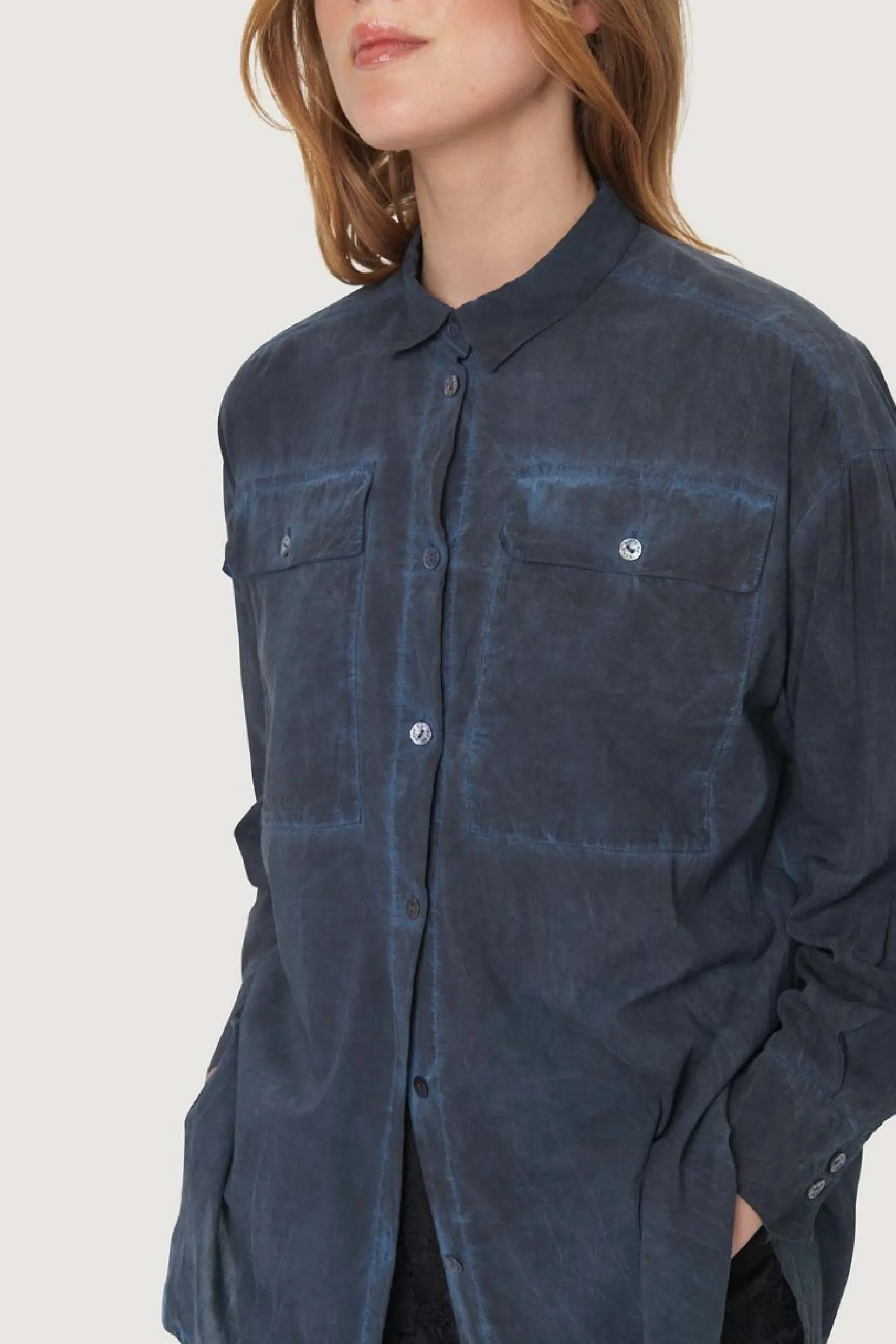 Skjorte designet i den lækreste bomuldskvalitet, der har et distressed look, hvilket tilfører et råt udtryk til den ellers klassiske skjorte. Det er en skjorte, der vil klæde enhver underdel.Modellen på billede er 180 cm og iført str. SFuld længde i str. S, ca. 79 cm.