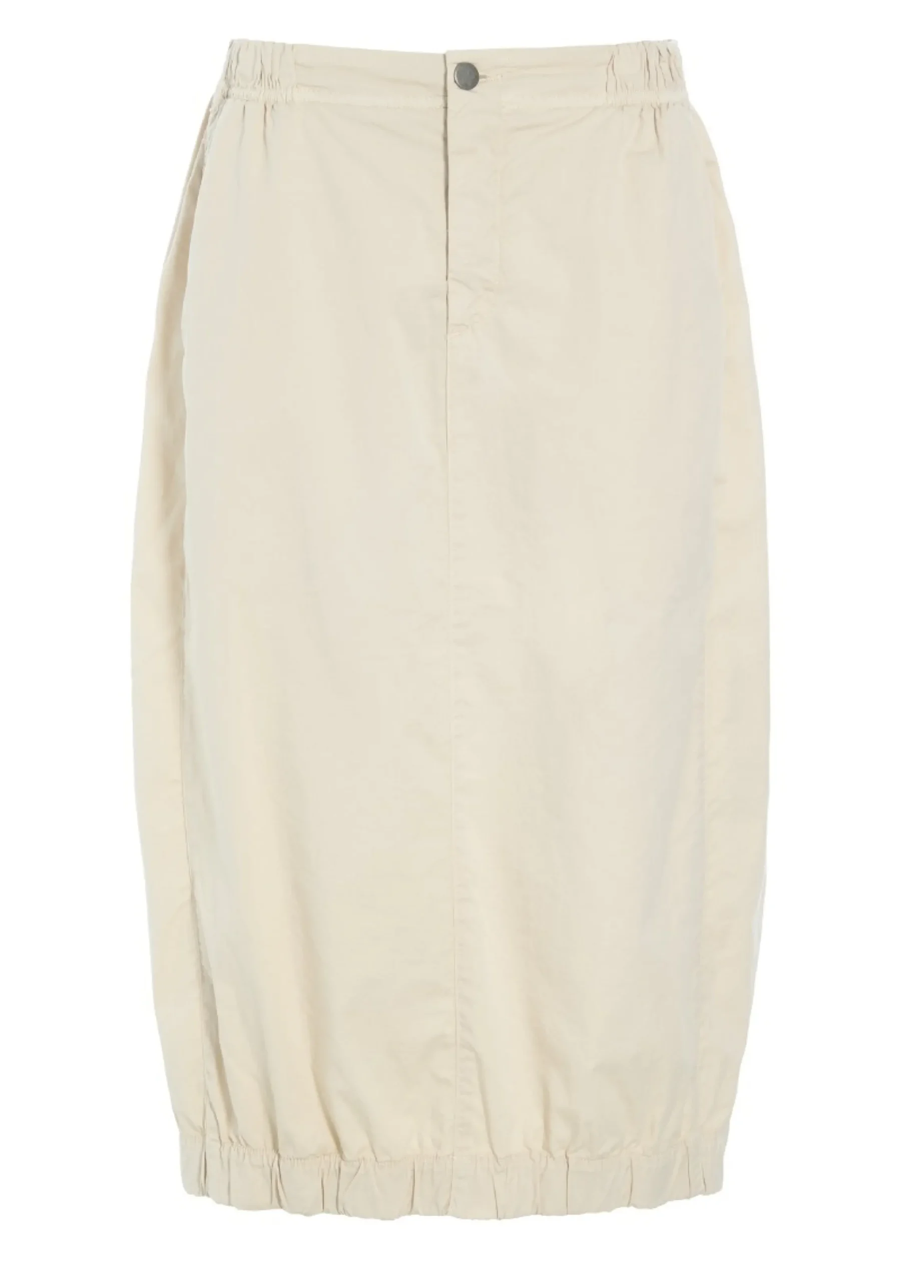 Nederdel med elastik både i linningen og forneden, hvilket skaber en flatterende tulipanform. Brug nederdelen til en enkel t-shirt eller top. Eller kombiner den med den matchende Senmei jakke, og du har et tidløst og klædeligt sæt.Modellen på billede er 178 cm og iført str. SLængde målt fra taljen i str. S: ca. 77 cm.