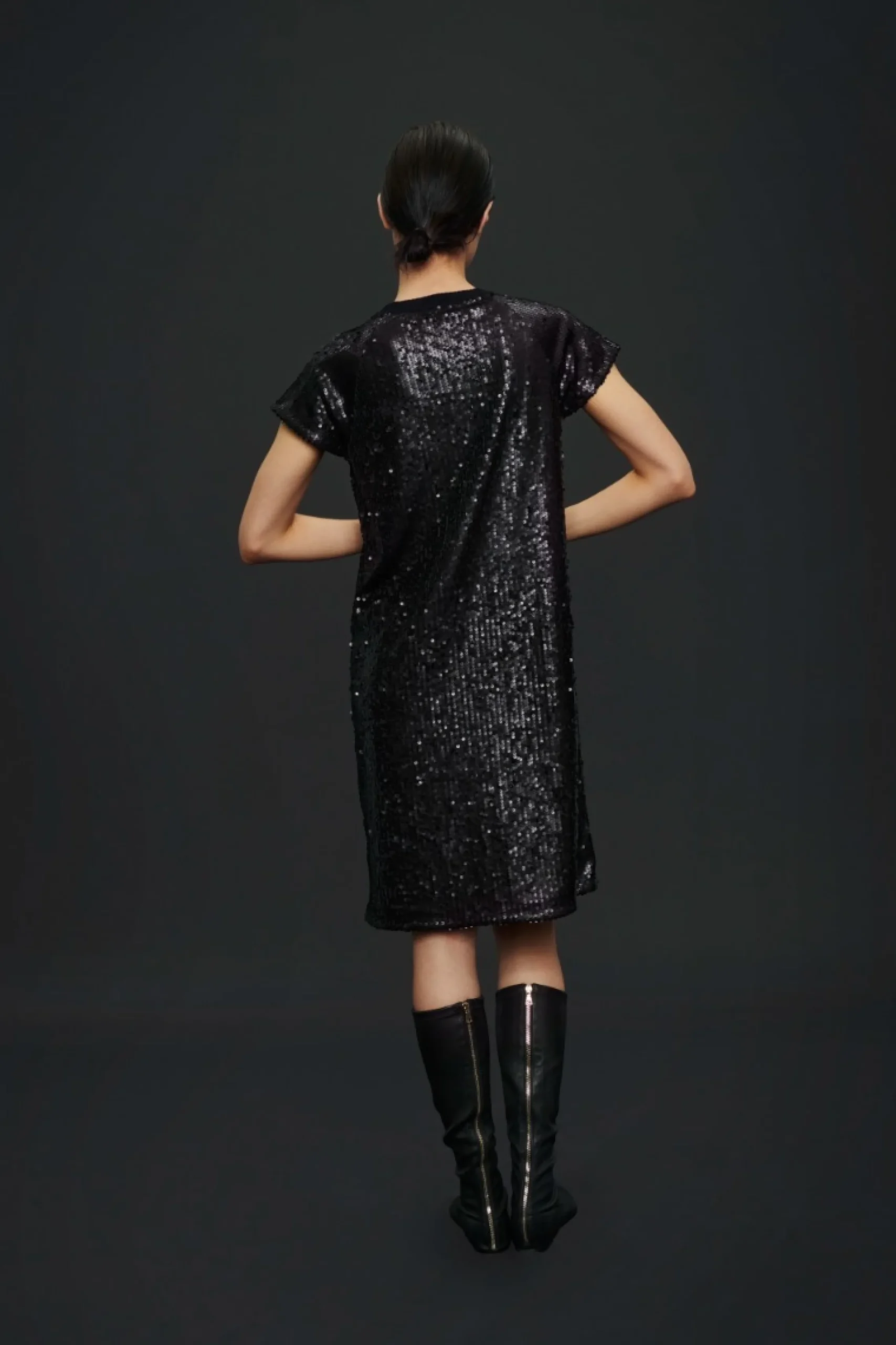 Med denne pailletbesatte kjole bliver ingen fest kedelig. Snittet er lige så enkelt, som kjolen er funklende. En super let vej til et elegant look. Sæt blot et par flotte øreringe og dine yndlingsfestsko til, og du er klar til at slå dig løs.Modellen på billede er 179 cm og iført str. SFuld længde i str. S, ca. 99 cm