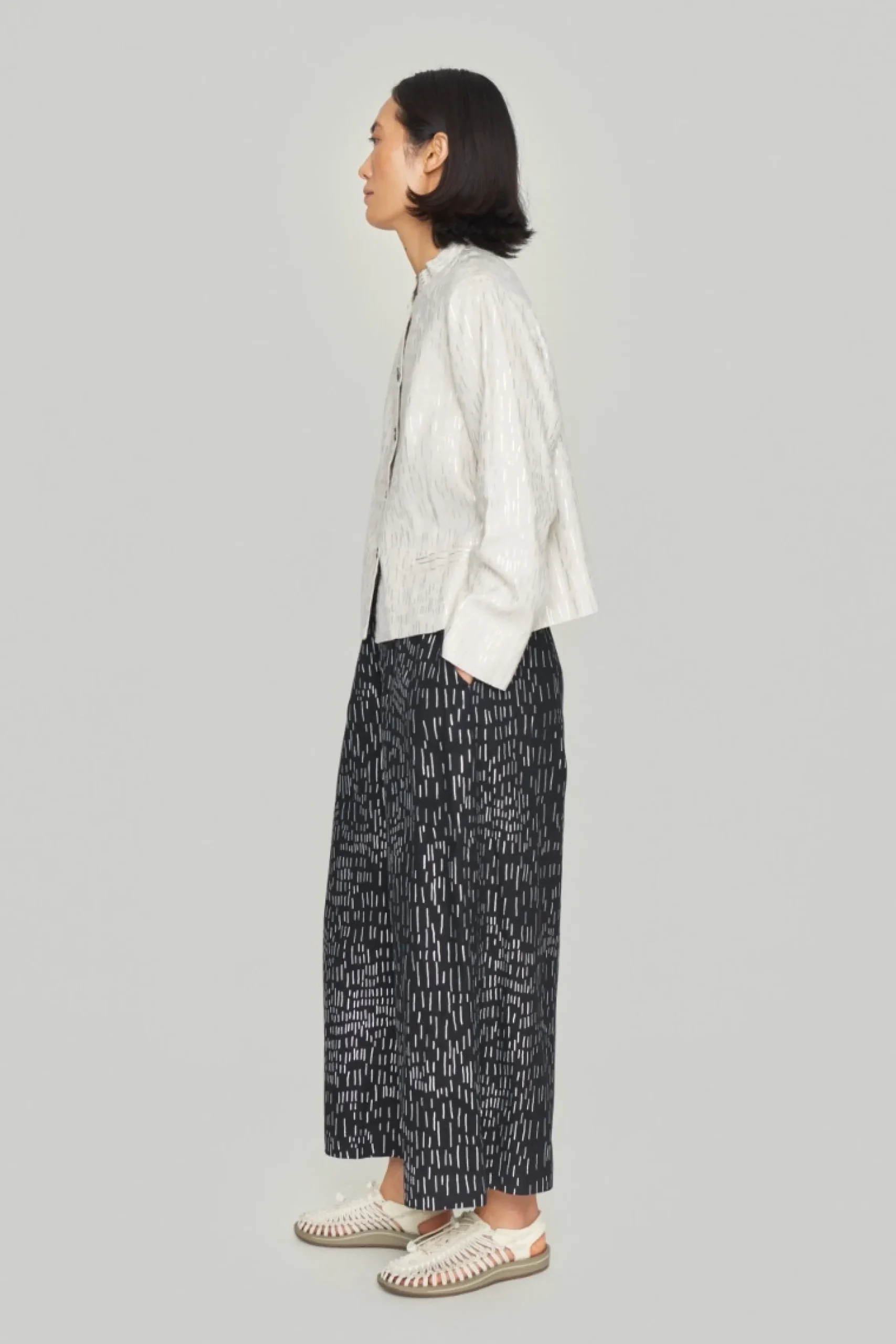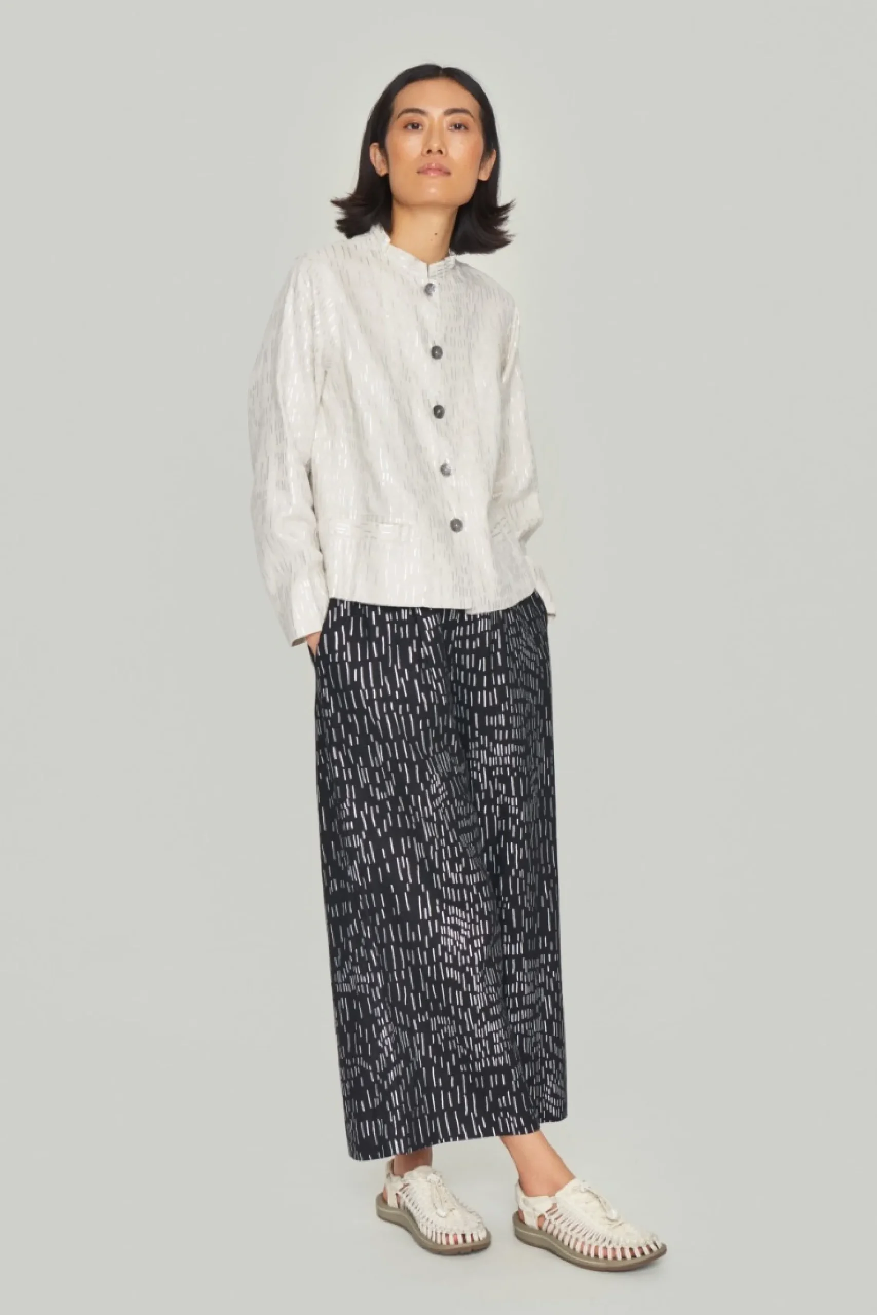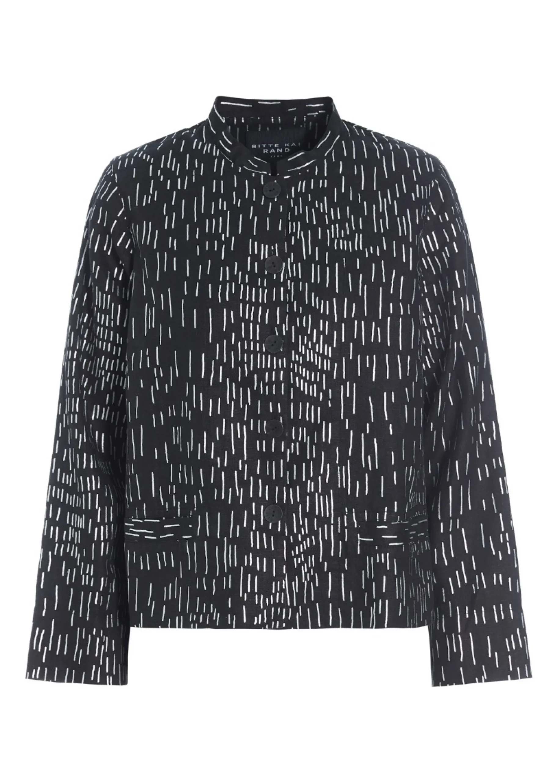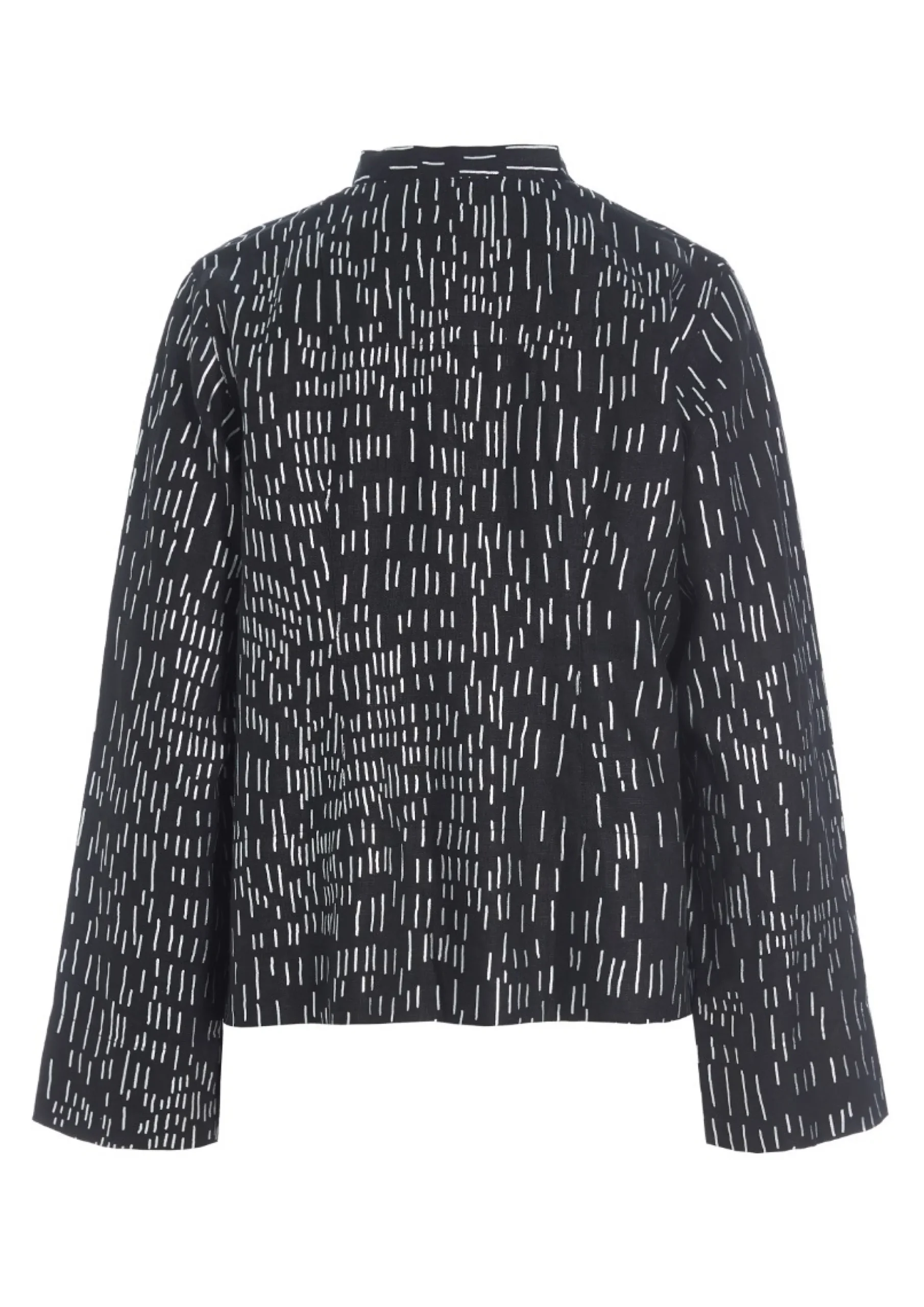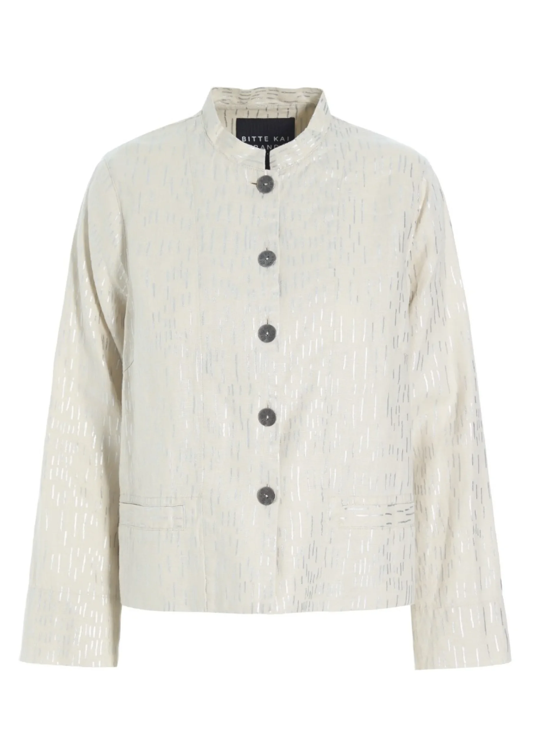 Denne super enkle og velsiddende jakke er forsynet med et metallisk mønster, som giver den et cool, grafisk udtryk. Opgrader dit hverdagslook ved at kombinere jakken med et par jeans, eller skab et elegant sæt med de matchende Silver Stick bukser.Modellen på billede er 178 cm og iført str. SFuld længde i str. S, ca. 59 cm.