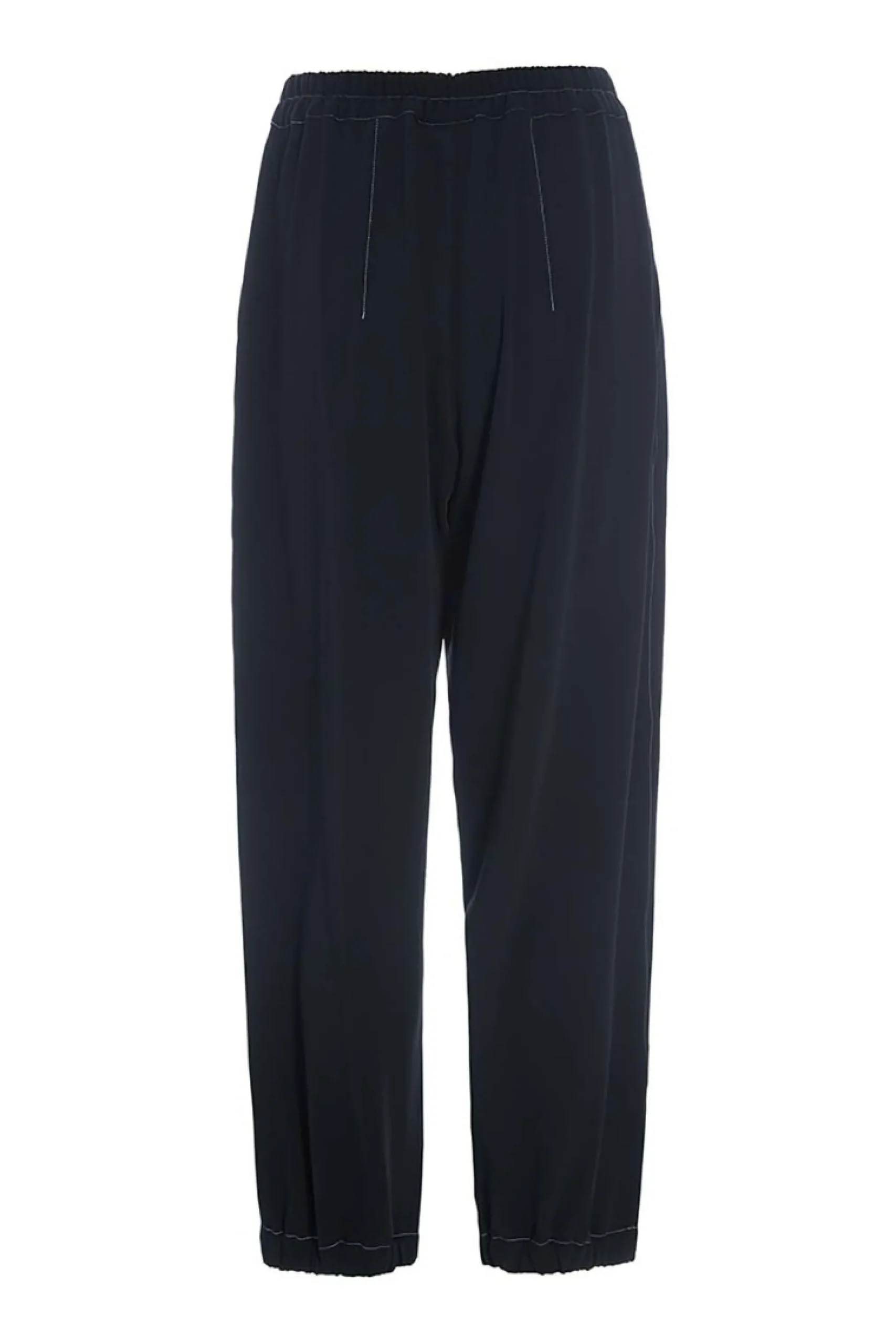 Bukser med elastik i linningen og ved anklerne, hvilket giver en flot, let poset effekt. Benene er moderat brede, og der er stretch i stoffet, som sikrer god bevægelighed. Bukserne gør sig godt tilsat en klassisk skjorte eller en lækker striktrøje. Og sætter du dem til den matchende Tokyo Twill jakke, får du et stilsikkert outfit.Modellen på billede er 180 cm og iført str. SLængde målt fra taljen i str. S: ca. 99 cm.