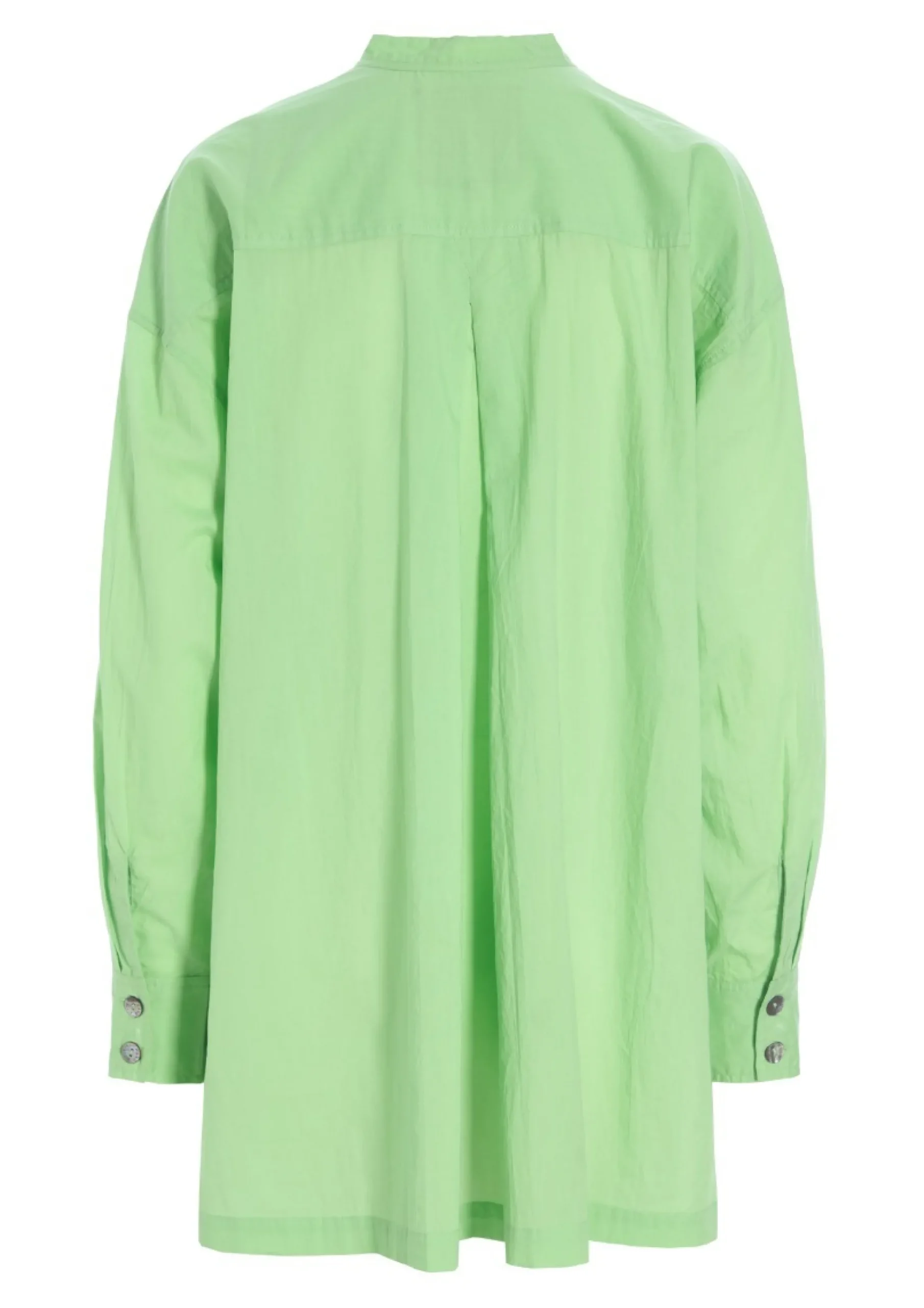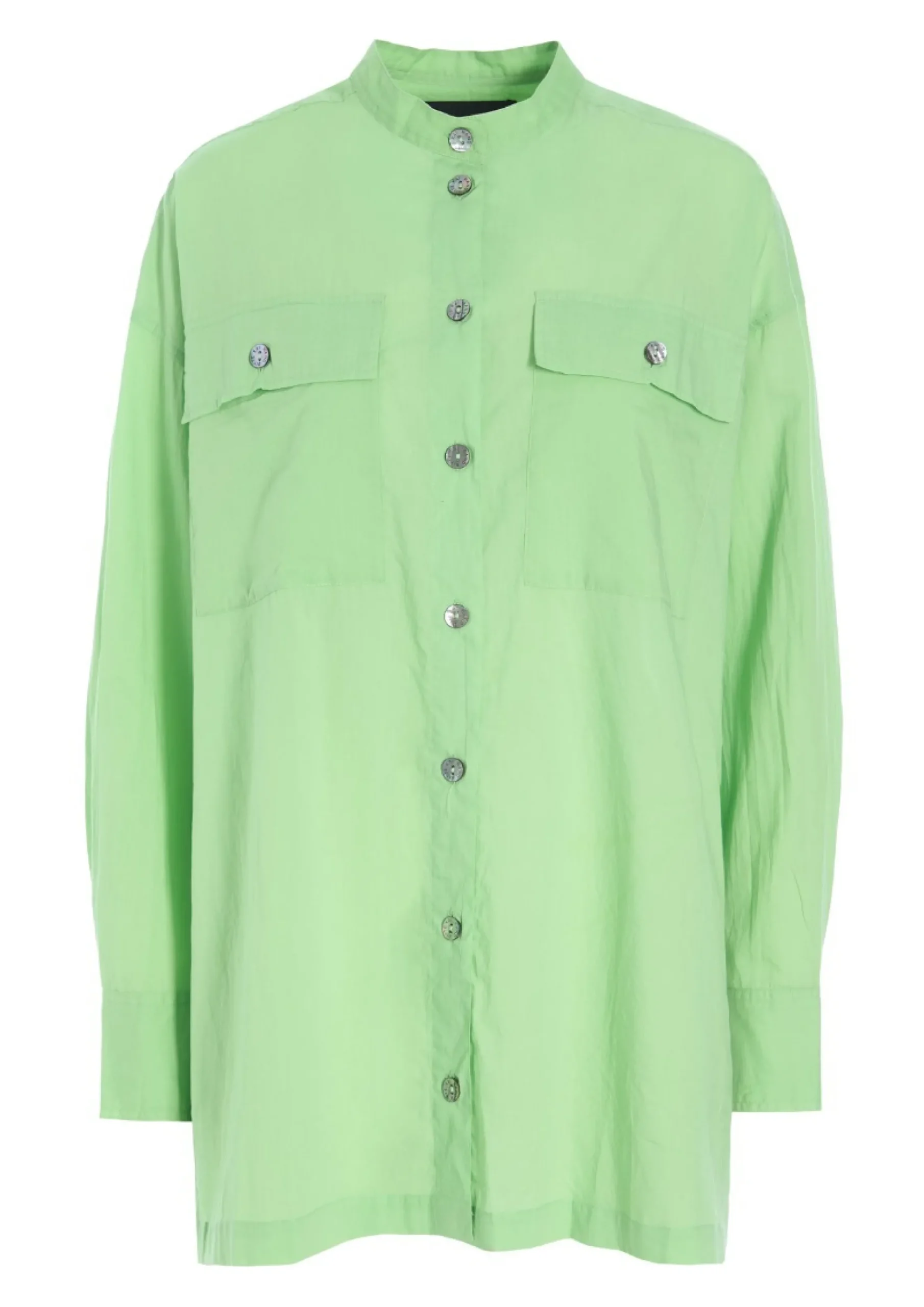 En stor skjorte med brystlommer, kinakrave og slidser i siden. Den vil være et sikkert basiselement i enhver garderobe og kan bruges på et utal af måder. Sæt den til jeans, bukser med brede ben eller en kort nederdel.Modellen på billede er 178 cm og iført str. SFuld længde i str. S, ca. 79 cm.