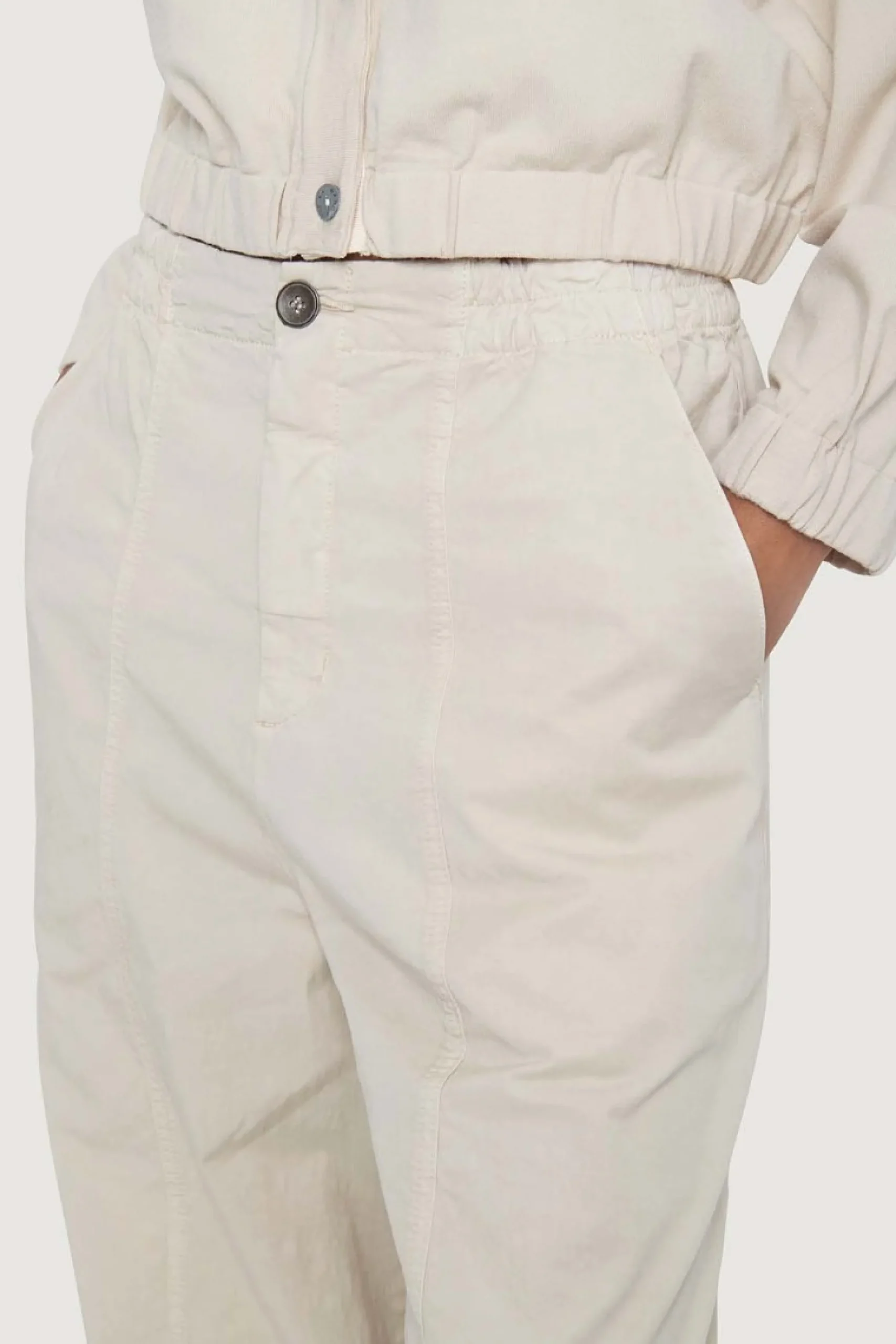 Udover at være meget behagelige at have på så er disse bukser særdeles klædelige. De sidder godt og giver et cool og casual udtryk. Bukserne kan sættes til alt lige fra rullekravebluse og skjorte til sweater. Kombinerer du bukserne med den asymmetriske Wabi-jakke, får du et lækkert suite.Modellen på billede er 180 cm og iført str. SLængde målt fra taljen i str. S: ca. 99 cm.