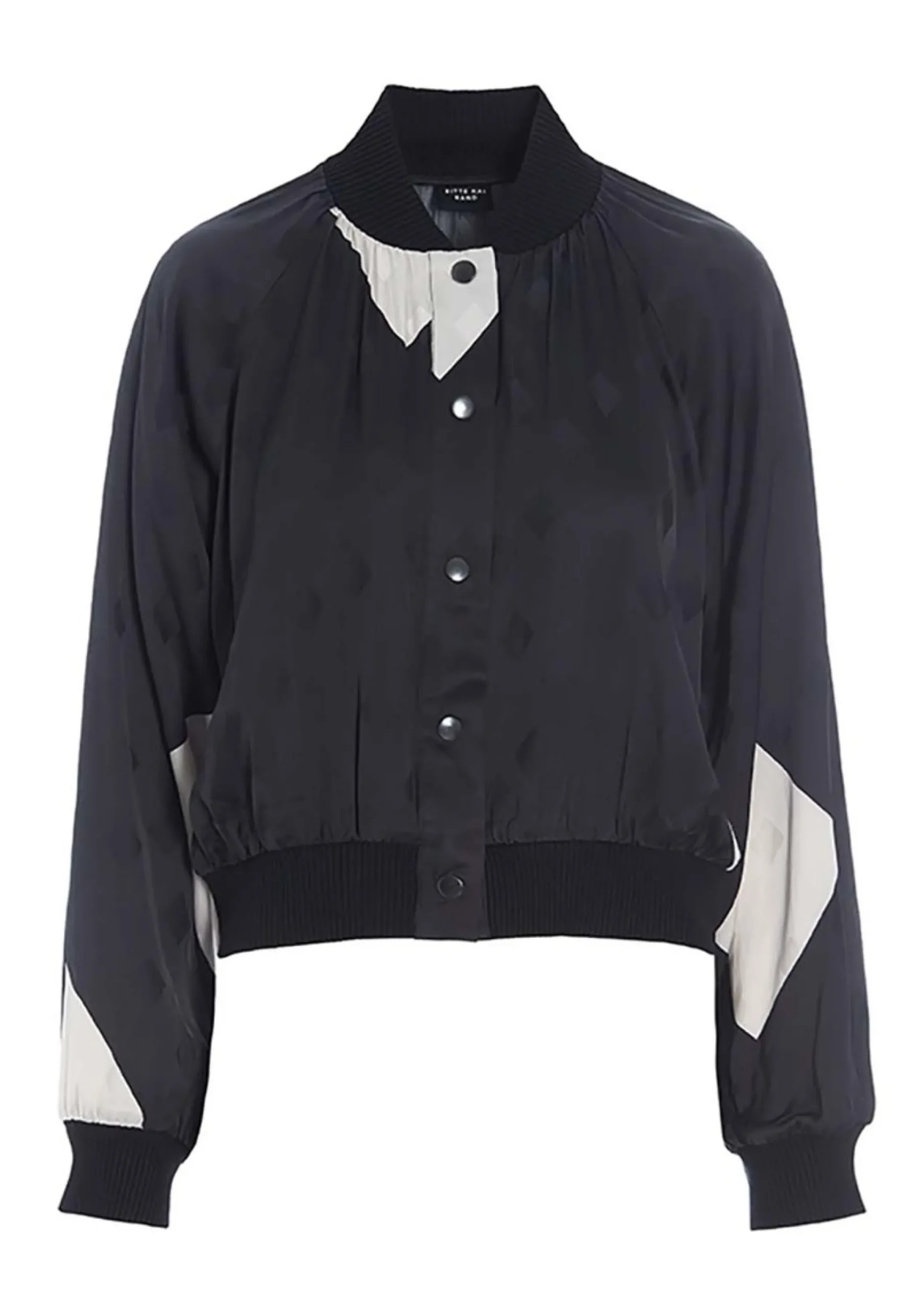 Kort jakke i bomber-stil og designet i en lækker, luftig viskosekvalitet. Jakken har ribmanchetter, som får ærmerne til at pose flot. Og ellers er det fine mønster i fokus. En jakke, der kan bruges som alternativ til en cardigan, og sætter du den til den matchende Yukoku kjole, får du et elegant sæt.Modellen på billede er 180 cm og iført str. SFuld længde i str. S, ca. 51 cm.